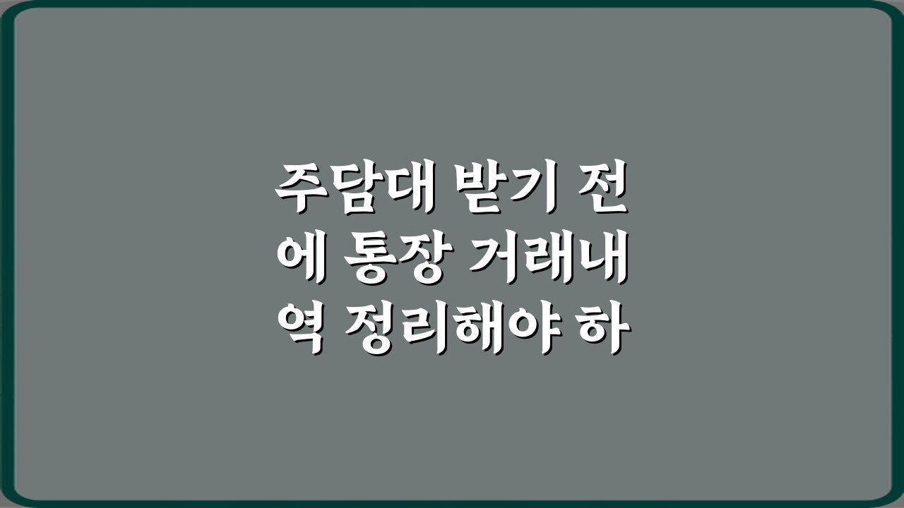 **메타 설명:** 주담대 신청 전 통장 거래내역, 꼭 정리해야 할까요? 승인률을 좌우하는 통장 관리 노하우와 대출 심사 통과 비법 5가지를 지금 확인하세요!