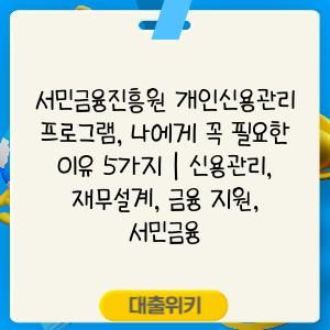 서민금융진흥원 개인신용관리 프로그램, 나에게 꼭 필요한 이유 5가지 | 신용관리, 재무설계, 금융 지원, 서민금융