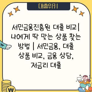 서민금융진흥원 대출 비교 | 나에게 딱 맞는 상품 찾는 방법 | 서민금융, 대출 상품 비교, 금융 상담, 저금리 대출