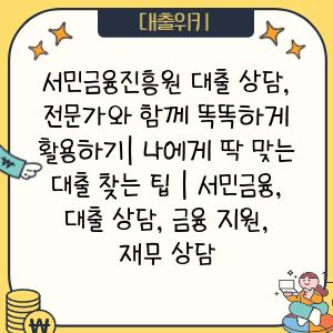 서민금융진흥원 대출 상담, 전문가와 함께 똑똑하게 활용하기| 나에게 딱 맞는 대출 찾는 팁 | 서민금융, 대출 상담, 금융 지원, 재무 상담