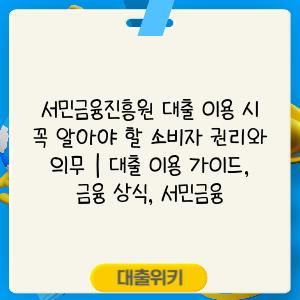 서민금융진흥원 대출 이용 시 꼭 알아야 할 소비자 권리와 의무 | 대출 이용 가이드, 금융 상식, 서민금융
