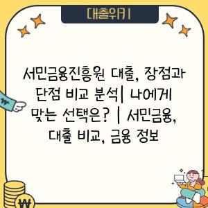 서민금융진흥원 대출, 장점과 단점 비교 분석| 나에게 맞는 선택은? | 서민금융, 대출 비교, 금융 정보