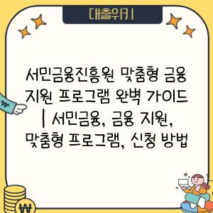서민금융진흥원 맞춤형 금융 지원 프로그램 완벽 가이드 | 서민금융, 금융 지원, 맞춤형 프로그램, 신청 방법