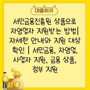 서민금융진흥원 상품으로 자영업자 지원받는 방법 | 자세한 안내와 지원 대상 확인 | 서민금융, 자영업, 사업자 지원, 금융 상품, 정부 지원