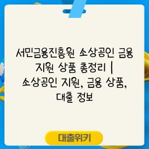 서민금융진흥원 소상공인 금융 지원 상품 총정리 | 소상공인 지원, 금융 상품, 대출 정보 에 대해 자주 묻는 질문 TOP 5