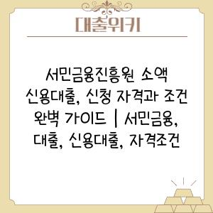 서민금융진흥원 소액 신용대출, 신청 자격과 조건 완벽 가이드 | 서민금융, 대출, 신용대출, 자격조건