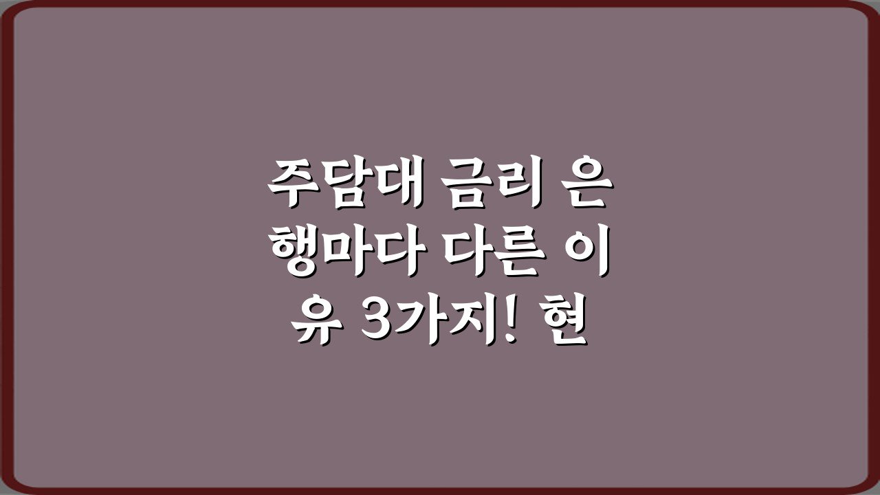 **메타 설명:** 주담대 금리가 은행마다 다른 진짜 이유 3가지! 이 정보로 수백만원 아끼는 현명한 대출 선택을 위한 필수 가이드를 확인하세요.