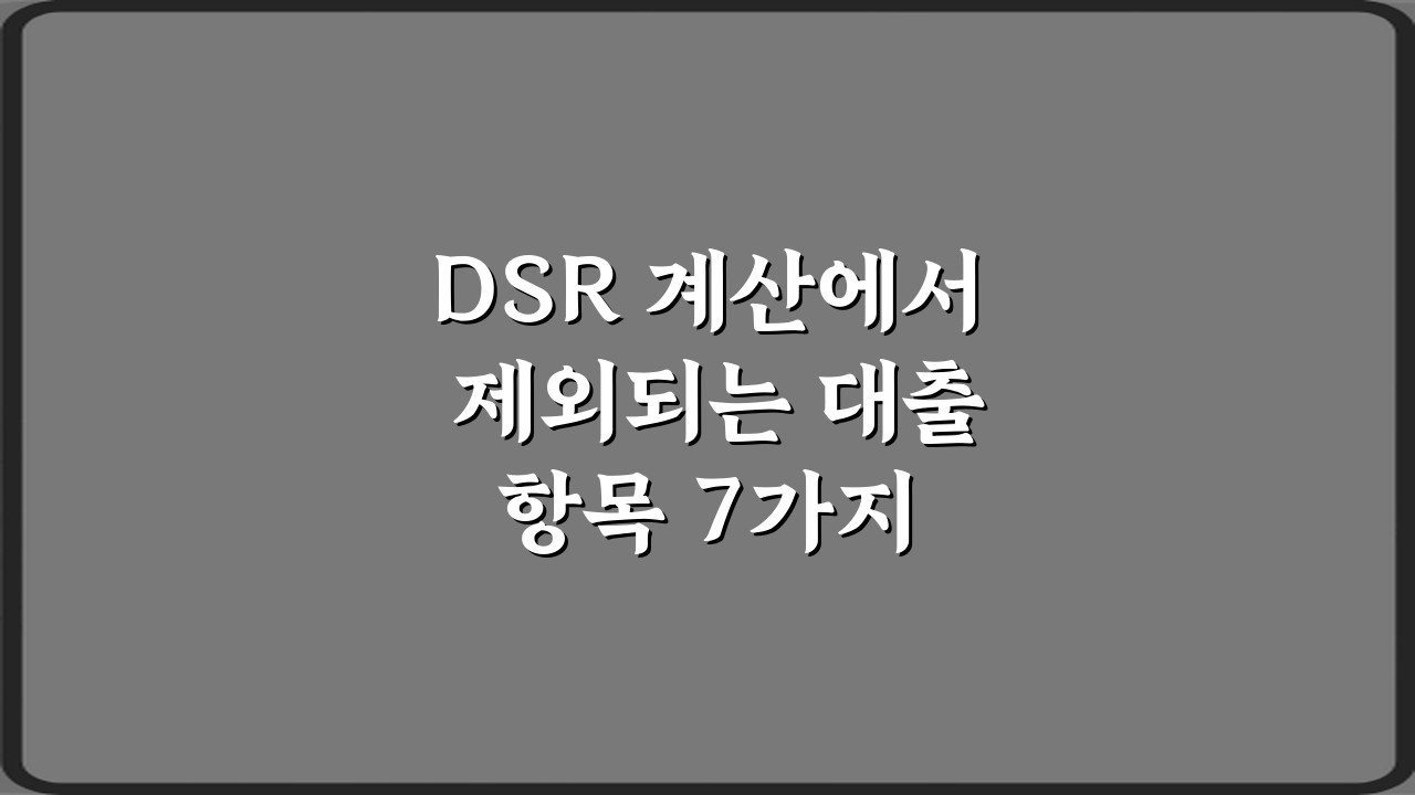 DSR 계산에서 제외되는 7가지 대출 항목을 총정리해 드립니다. 대출 한도와 전략을 최적화할 필수 정보를 지금 확인하고 더 유리한 대출을 받아보세요!